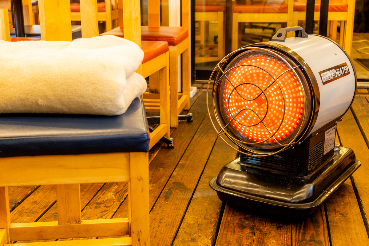 秋冬も解放感たっぷりの屋上ストーブ付きテラス席でBBQが⼤⼈気✨あったか鍋&熱燗もあり❗️